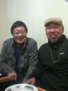 写真は、旭川のラーメン屋で奥山さんと三上寛さんのツーショット