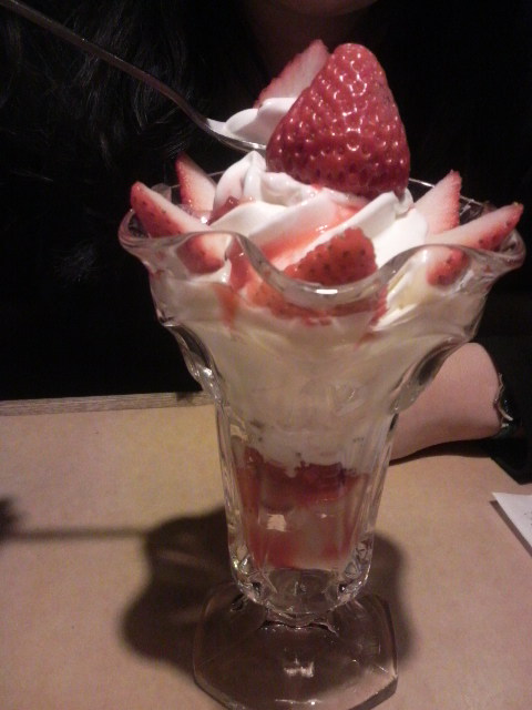 デザートに嫁さんが、牧場のいちごパフェを30秒でたべ終えてた…