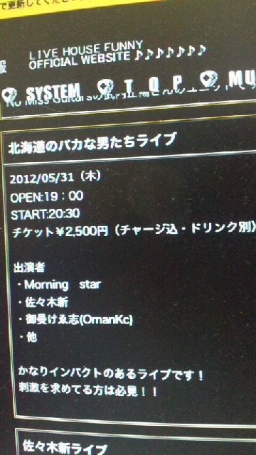 次のライヴは、5月31日 すすきの FUNNYです